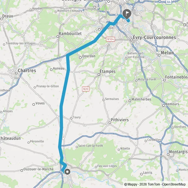 Prendre à droite et rejoindre A10. Continuer sur 91 kilomètres