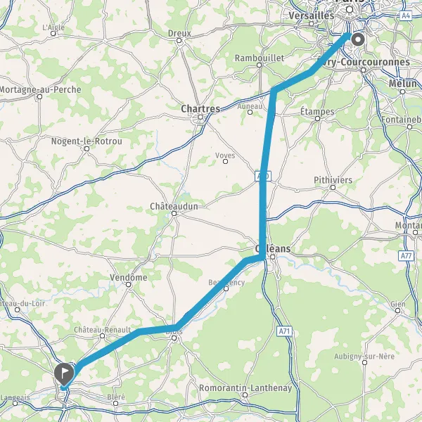 Prendre à droite et rejoindre A10. Continuer sur 34 kilomètres