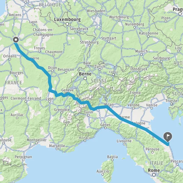 Prendre à droite et rejoindre A6a E5. Continuer sur 296 kilomètres