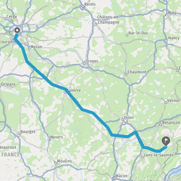 Prendre à droite et rejoindre A6a E5. Continuer sur 296 kilomètres