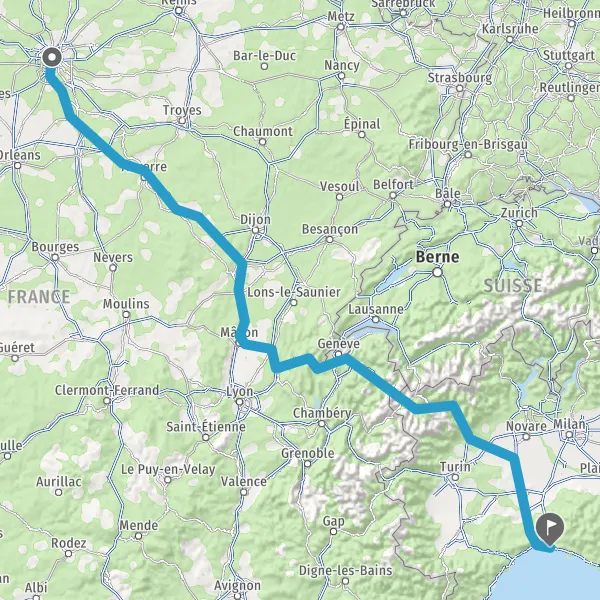 Prendre à droite et rejoindre A6a E5. Continuer sur 296 kilomètres