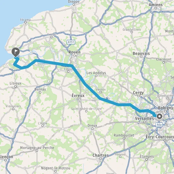 Comment aller de Paris (75000) à Honfleur (14600) en voiture ?