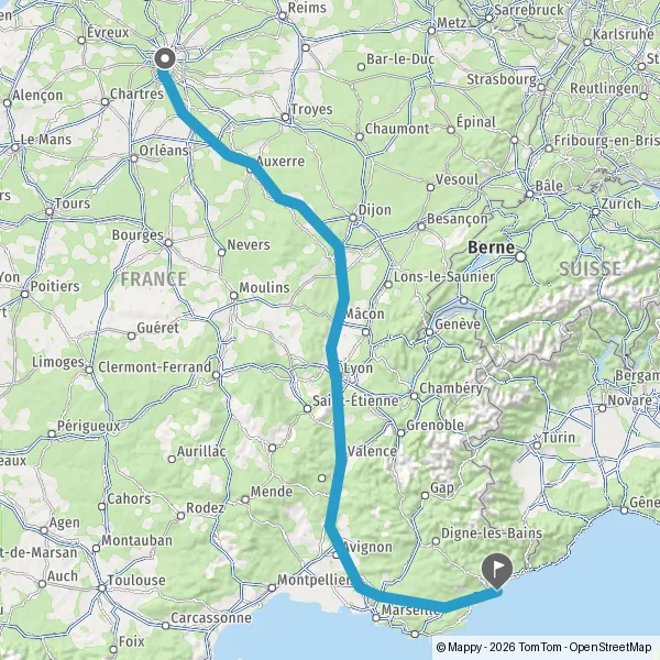 Prendre à droite et rejoindre A6a E5. Continuer sur 296 kilomètres