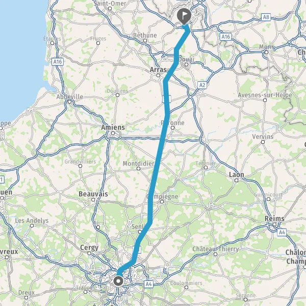 Continuer et rejoindre A1 A1 E15 E19. Continuer sur 121 kilomètres