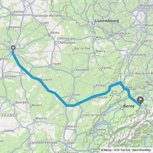 Prendre à droite et rejoindre A36. Continuer sur 226 kilomètres