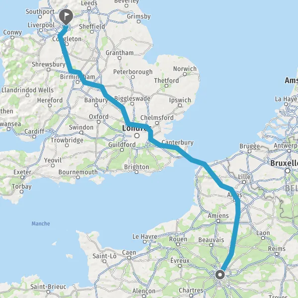 Prendre le ferry E15 (Dover - Calais) pendant 1 heure 38 minutes