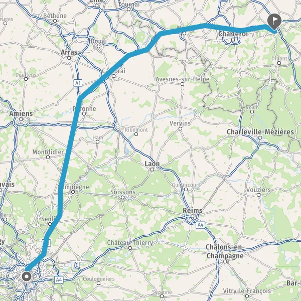 • Continuer et rejoindre A1 A1 E15 E19. Continuer sur 121 kilomètres