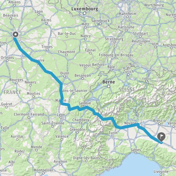 Prendre à droite et rejoindre A6a E5. Continuer sur 296 kilomètres