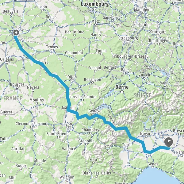 Prendre à droite et rejoindre A6a E5. Continuer sur 296 kilomètres