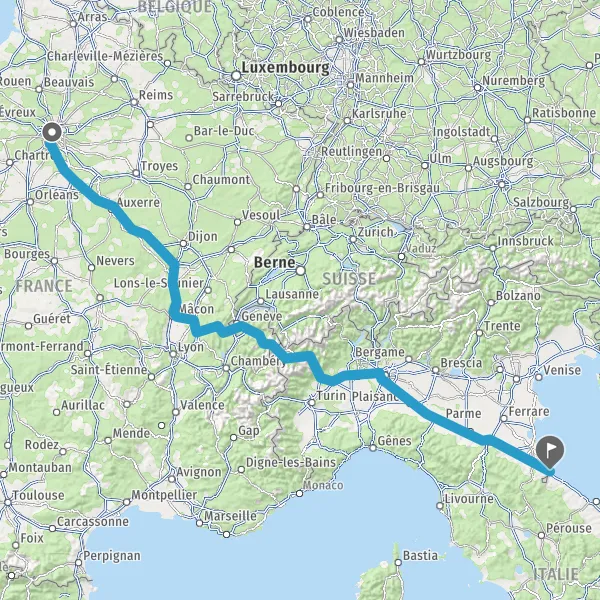 Prendre à droite et rejoindre A6a E5. Continuer sur 296 kilomètres