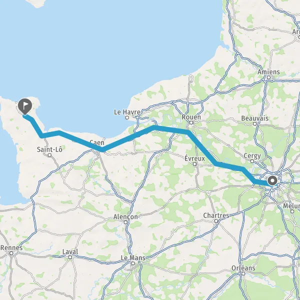 Trajet de Paris (75000) à Valognes (50700) en voiture