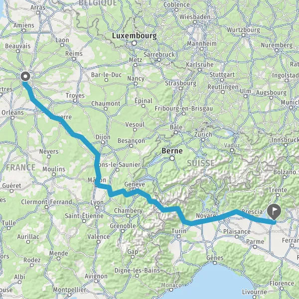 Prendre à droite et rejoindre A6a E5. Continuer sur 296 kilomètres