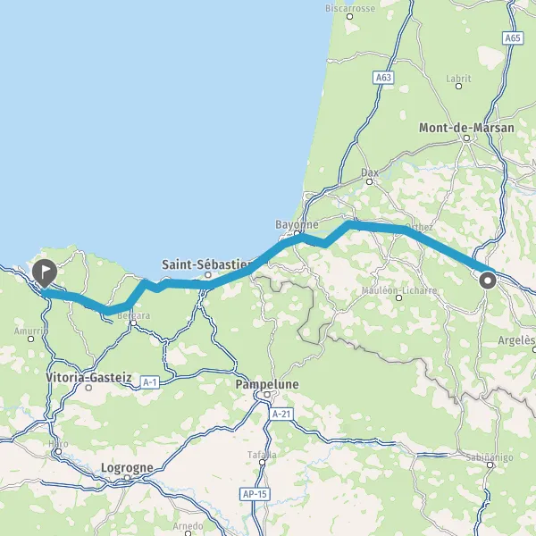 Tourner légèrement à droite sur A63 E5 E70 E80 et continuer sur 31 kilomètres