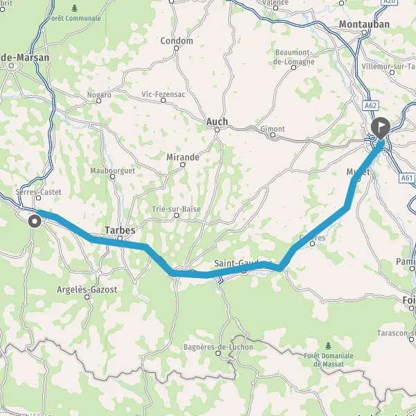 Prendre à droite et rejoindre A64 E80. Continuer sur 183 kilomètres