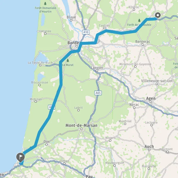 Prendre à droite et rejoindre A63. Continuer sur 172 kilomètres