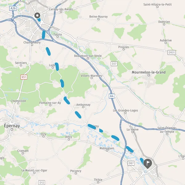 Tourner légèrement à gauche sur D8 (Route de Cormontreuil) et continuer sur 950 mètres