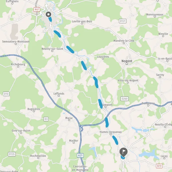 Tourner légèrement à gauche sur N19 E54 (Route de Chaumont) et continuer sur 65 mètres