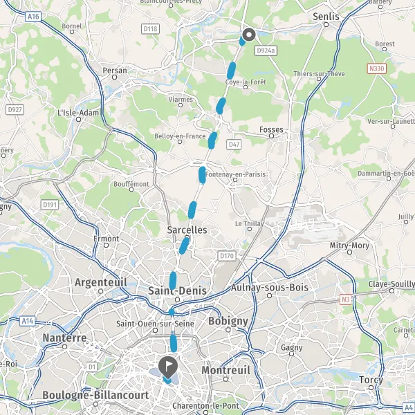 Tourner à gauche sur D1016 (Rue de Paris) et continuer sur 950 mètres