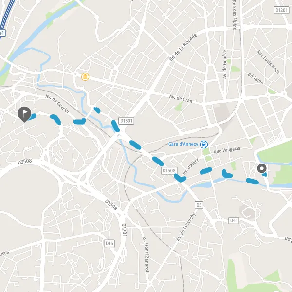 Prendre à gauche et rejoindre Rond-Point du Thiou. Continuer sur 400 mètres