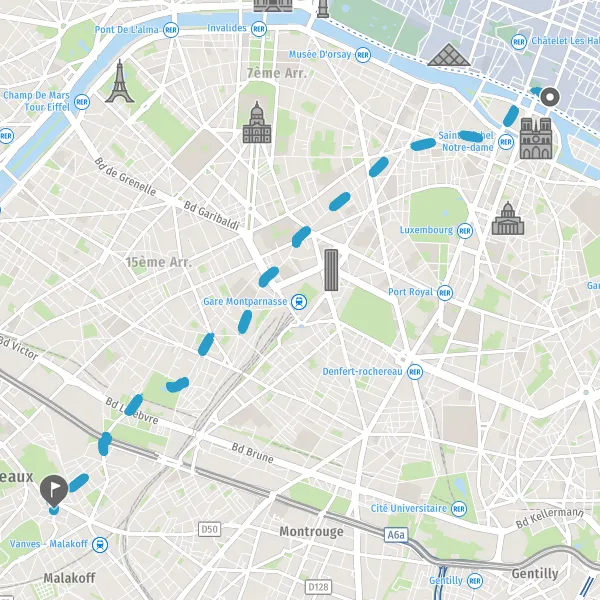 Continuer Rue Falguière sur 600 mètres