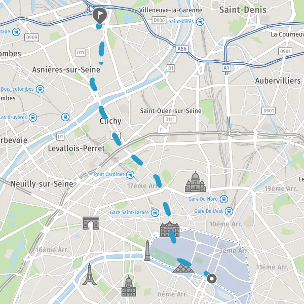 Tourner légèrement à droite sur D911 (Pont de Clichy) et continuer sur 90 mètres