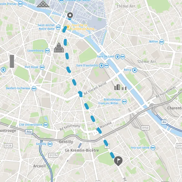 Tourner légèrement à gauche sur Avenue des Gobelins et continuer sur 800 mètres