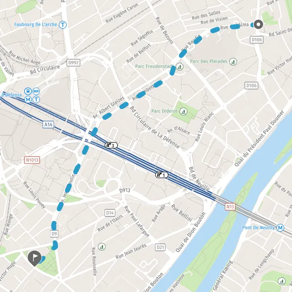 | Distance à pied | 2,2 km |