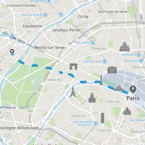 Tourner à droite sur Route de la Porte Dauphine à la Porte des Sablons et continuer sur 160 mètres