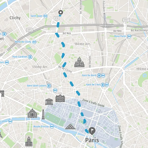 Tourner légèrement à gauche sur Avenue de la Porte de Saint-Ouen et continuer sur 120 mètres