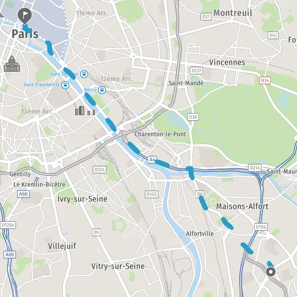 Tourner légèrement à gauche sur Quai de la Rapée et continuer sur 290 mètres