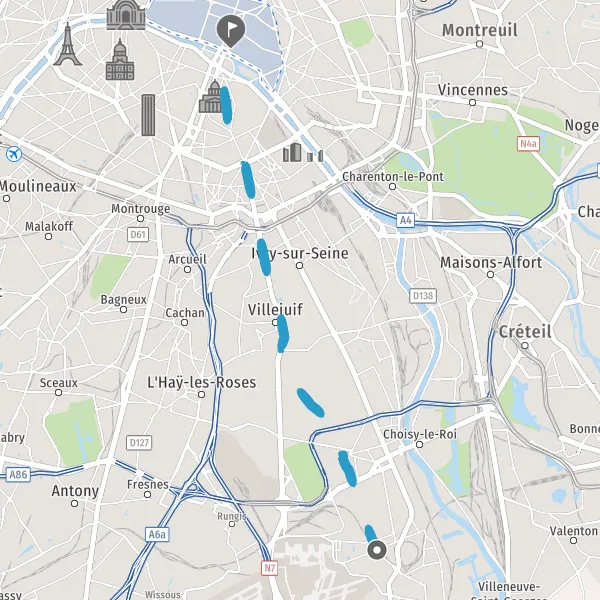 Tourner légèrement à droite sur Rue de Villejuif et continuer sur 2 kilomètres