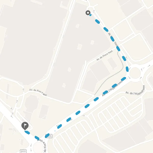 • Tourner légèrement à gauche sur Avenue de Pince Vent et continuer sur 55 mètres