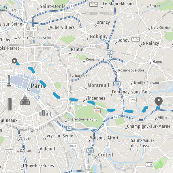 Au rond-point, prendre la 5ème sortie sur Avenue de la Porte de Vincennes et continuer sur 1 kilomètre