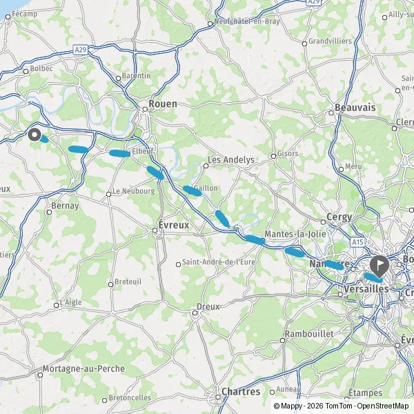 Au rond-point, prendre la 2ème sortie sur D313 (Rue de Bourgtheroulde) et continuer sur 3,1 kilomètres
