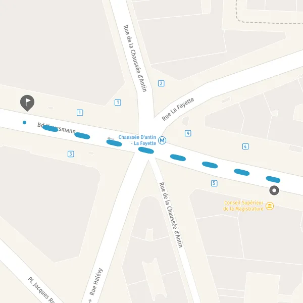 • Prendre Boulevard Haussmann et continuer sur 120 mètres