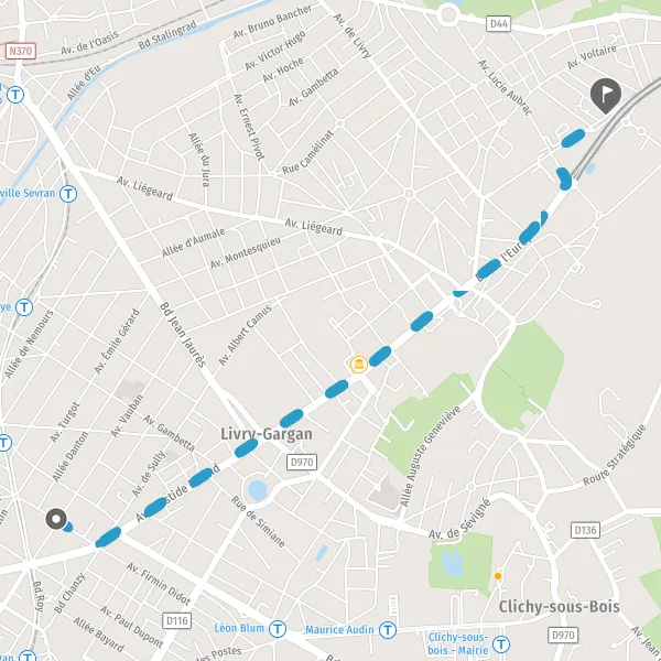 Itinéraire en pieton de Clinique De La Chaussure - 30 bd Gutenberg, 93190 Livry Gargan à Boulevard Robert Schuman, 93190 Livry-Gargan