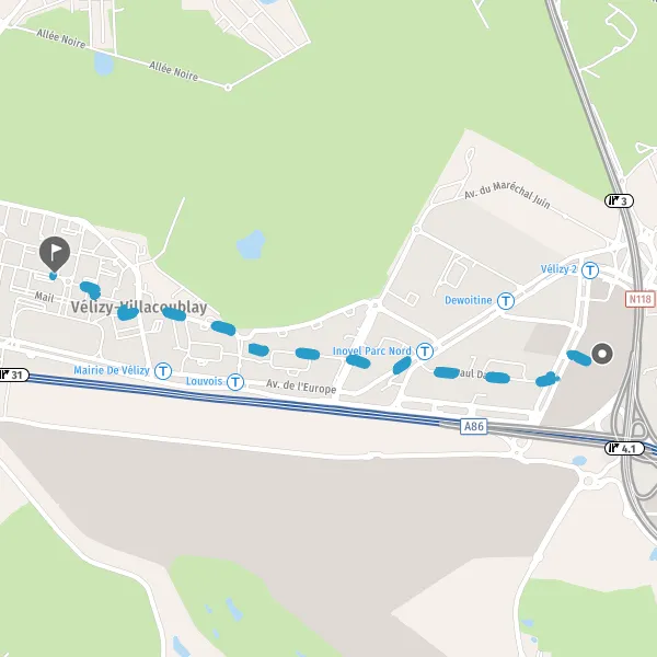 | Distance à pied | 3,0 km |