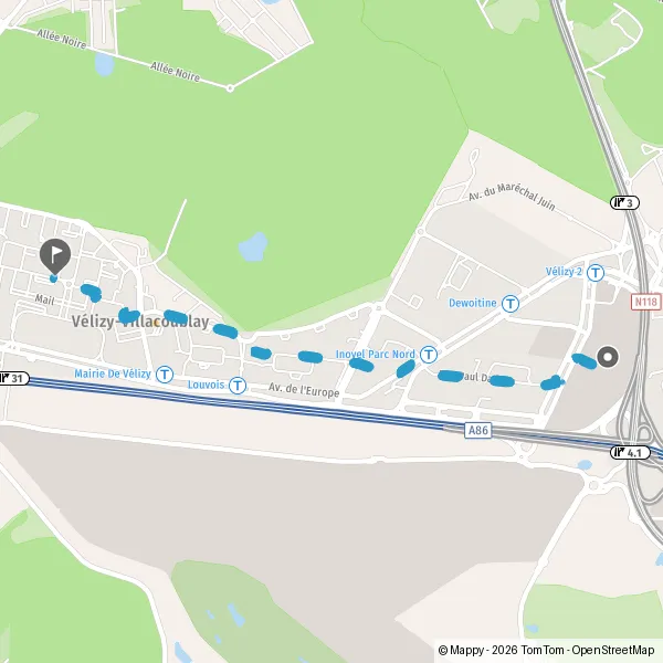 | Distance à pied | 3,0 km |