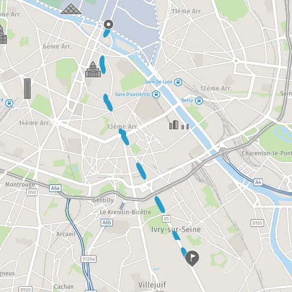 Tourner légèrement à gauche sur Avenue de Choisy et continuer sur 1,4 kilomètre