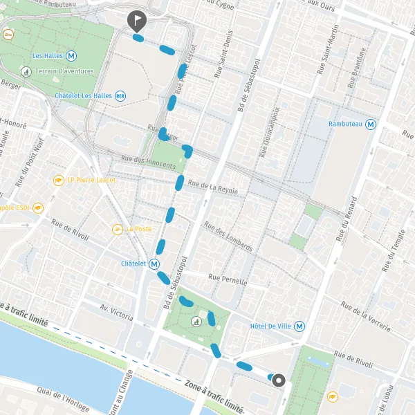 • Tourner à droite sur Boulevard de Sébastopol et continuer sur 10 mètres