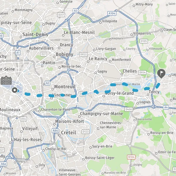 Continuer Rue de Lagny sur 2 kilomètre