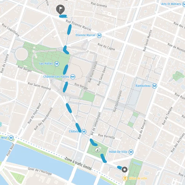 • Tourner à droite sur Boulevard de Sébastopol et continuer sur 10 mètres