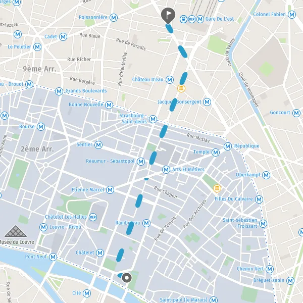 | Distance à pied | 2,5 km |