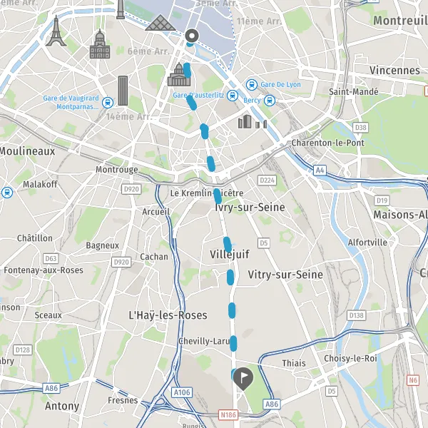 Tourner légèrement à gauche sur Avenue des Gobelins et continuer sur 800 mètres