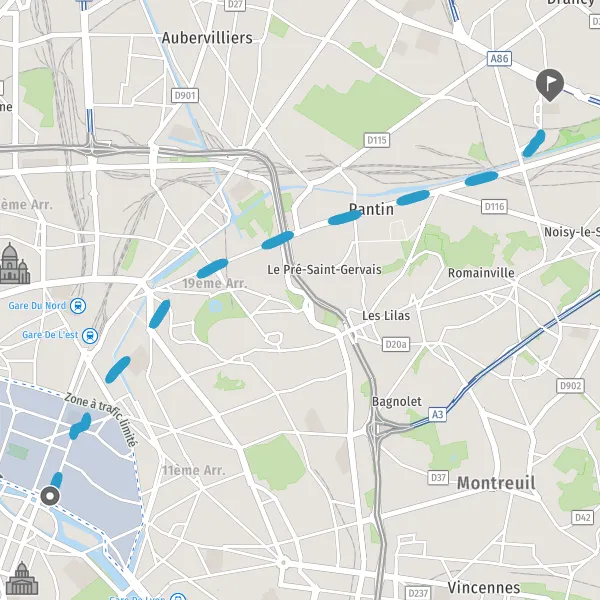 Continuer Avenue de la Porte de Pantin sur 3,4 kilomètres