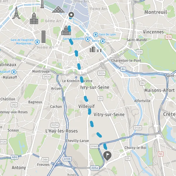 Tourner légèrement à gauche sur Avenue des Gobelins et continuer sur 800 mètres