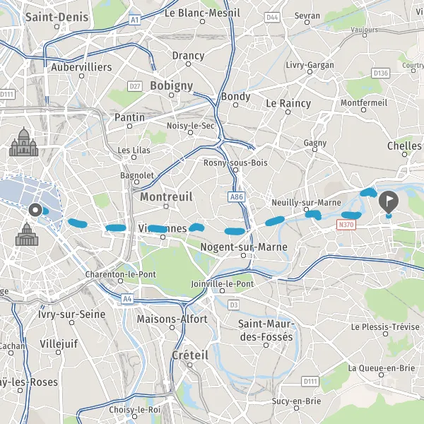 Continuer Rue de Lagny sur 2 kilomètre