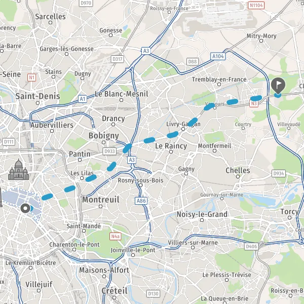 Prendre à gauche et rejoindre D933 (Avenue du Général Gallieni). Continuer sur 120 mètres