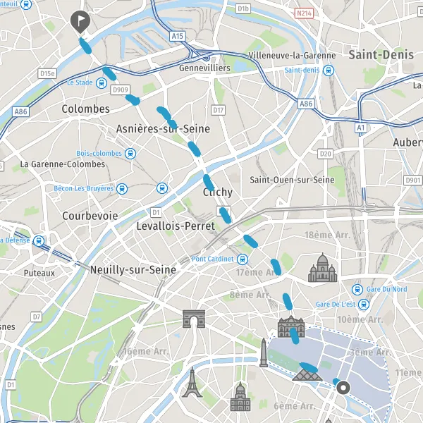 Tourner à gauche sur D911 (Pont de Clichy) et continuer sur 350 mètres