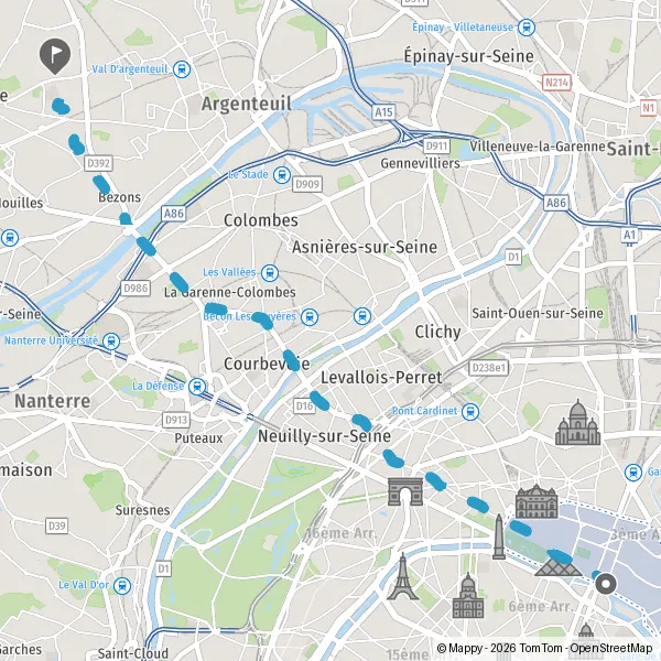 Tourner légèrement à gauche sur D908 (Boulevard Bineau) et continuer sur 210 mètres